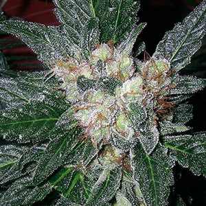Federation Seed’s Mikush is a Godzilla indica. Outdoors – ideally in a spot with lots of light and a dry breeze – Mikush’s huge, dark leaves convert solar energy into explosive growth, sometimes reaching 2 meters tall by 3 meters wide. Camouflage is a must. Indoors, Mikush needs big pots and plenty of room A heavy nutrient feed that would burn other plants only increases her power. She jumps ahead of other varieties in the seedling stage and finishes by dominating the grow room, supported by bamboo poles to prevent collapse.